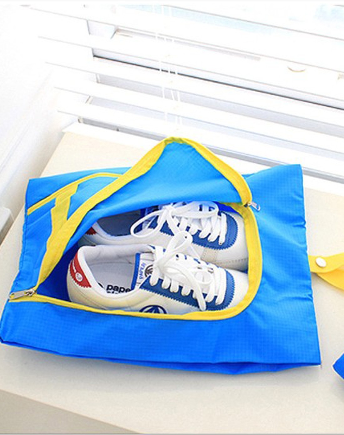 普通袋式的衣物收纳袋也可以收纳鞋子,轻便不占空间,也容易塞空儿,运动鞋的收纳袋也很适合。而专门的鞋子收纳袋样式各异,但都是系个拉链把鞋放在里面,选择分层的收纳袋可以将拖鞋也放进去,短途旅行就足够了。