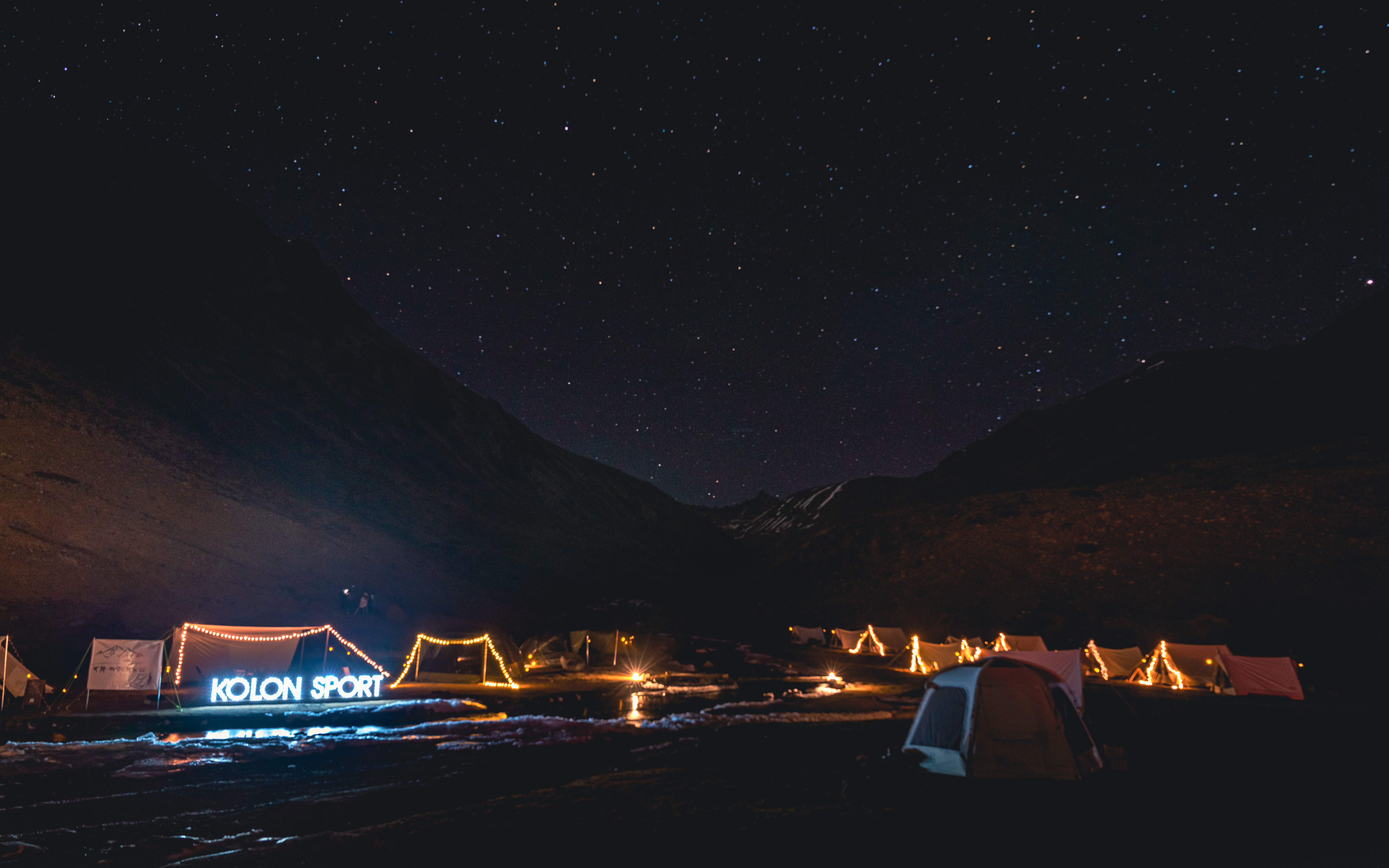 冬日的营地在群山包围中更显一种威严的寂静,这里最具饱和度的色彩来自澄澈的天空与皑皑雪峰,最具存在感的声响则来自山风与溪流。夜色渐浓,万鸟归林,不闻市井喧嚣,不见霓虹灯火,唯有璀璨星河旖旎壮丽。