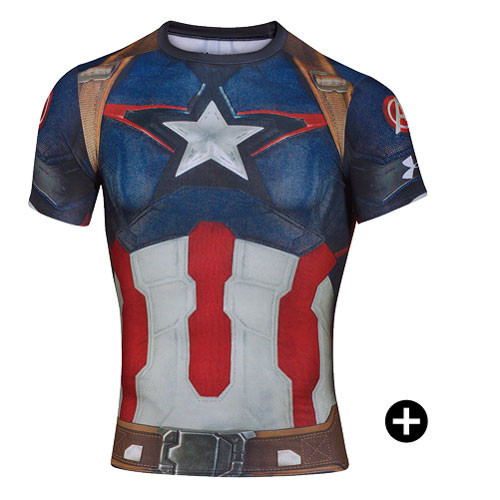 英雄系列男子美国队长强力伸缩运动上衣