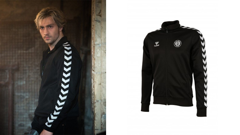 以足球鞋起家的Hummel是德国的运动品牌,快银在开场就穿了这件Hummel家黑色夹克亮相。