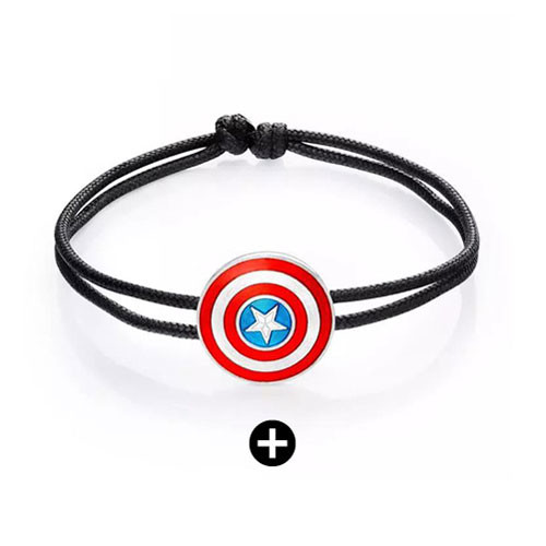 机智的周大福在首映之后就立马推出了漫威英雄系列的配饰,分别有钢铁侠,美队和雷神标志的银饰手绳(小锤子小盾牌什么的出现了!),吊饰和手表等。
