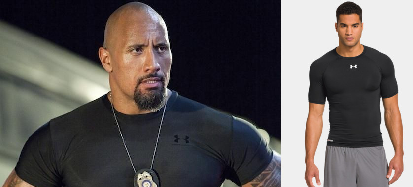 《速度与激情7》里的大块头巨石强森(Dwayne Johnson)也穿了UA的紧身衣,还是美队同款哦~