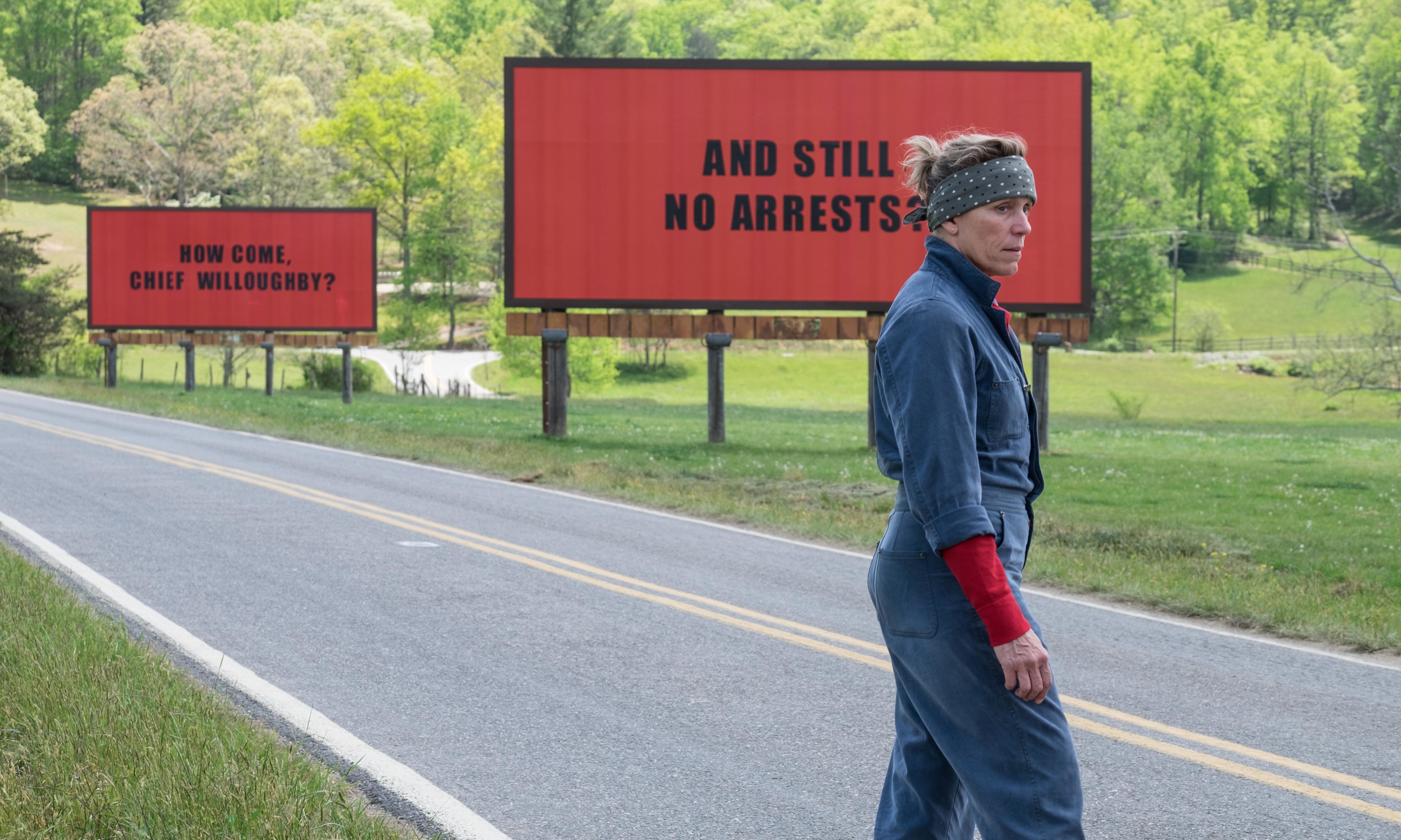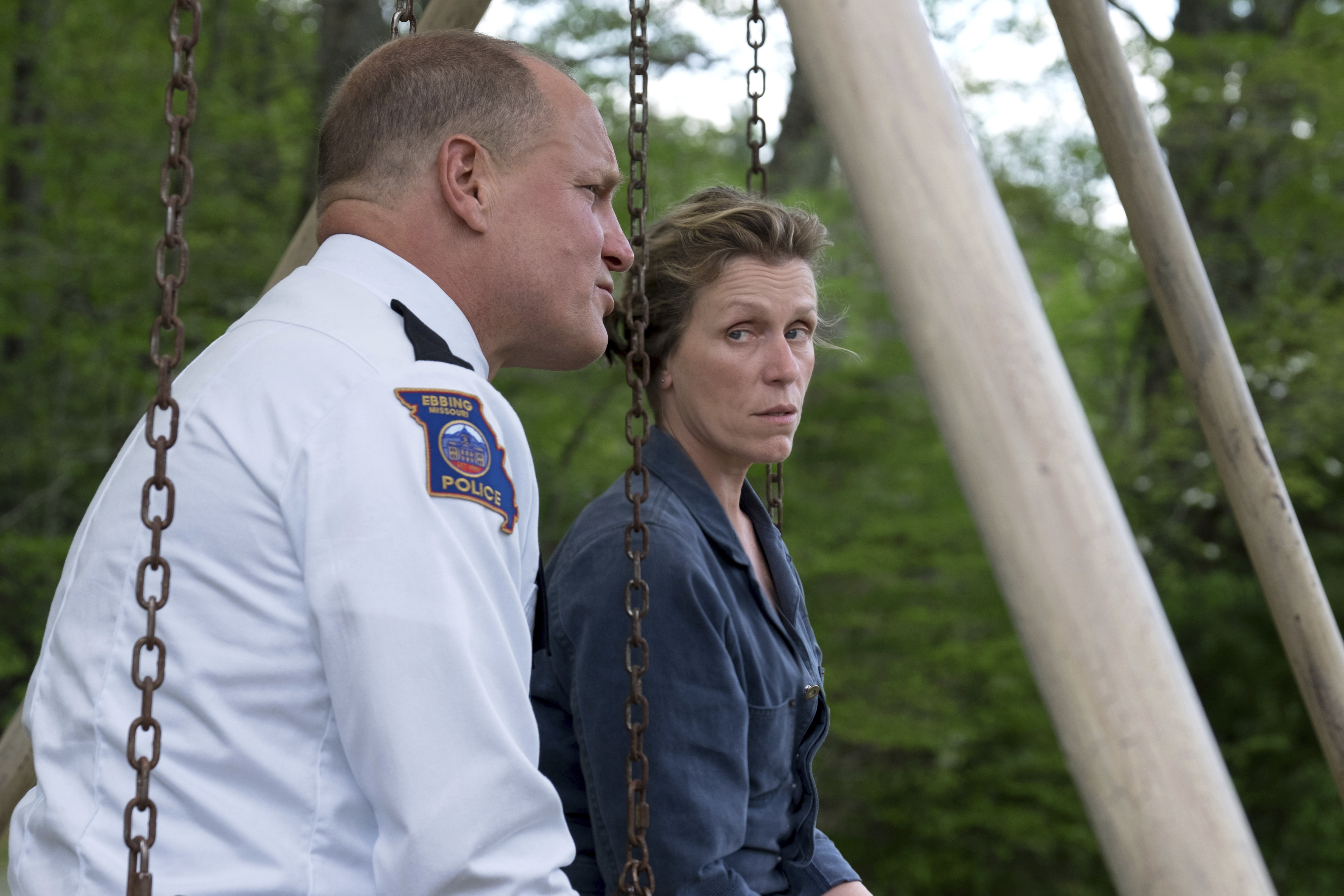 剧中的母亲米尔德雷德是科恩嫂弗兰西斯饰演的,贡献了超水准的表演,而警察局局长威洛比则是由伍迪•哈里森饰,他已经身患绝症、去日无多。受害者母亲偏执地将矛头指向这位是日无多的局长,而局长则在最后的日子里品尝了绝望,并渐渐开始理解这位母亲,本是水火不容的两人最后成为一条船上的蚂蚱。