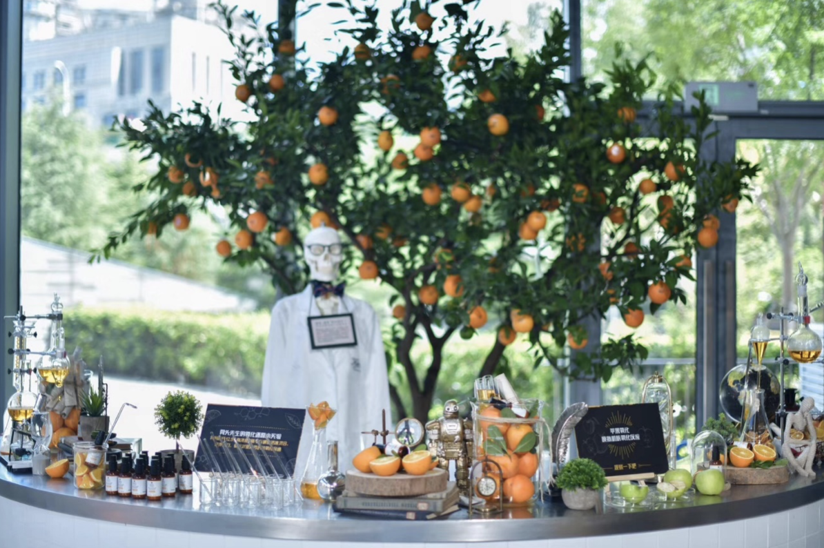 当天,科颜氏更将古老药房Mix现代实验室的医学专家风格融入了活动现场——显微镜、试管饮料、身着医师袍的骨头先生……诸多元素的有机组合完美展现了科颜氏皮肤专家系列专业卓效的系列风格。