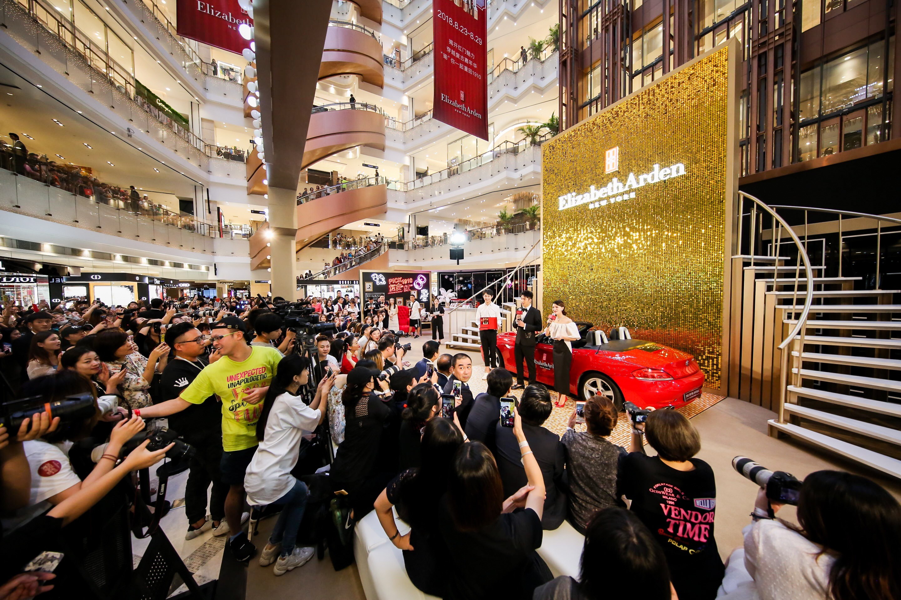 2018年08月23日-29日,百年专业彩妆品牌Elizabeth Arden伊丽莎白雅顿在全新品牌理念“果敢前行,从心出发”的引领下,于上海新世界大丸百货尊耀开启“Pick 1910 复古红嘉年华”。伊丽莎白雅顿中国区彩妆代言人黄景瑜更在08月25日亲临活动现场。