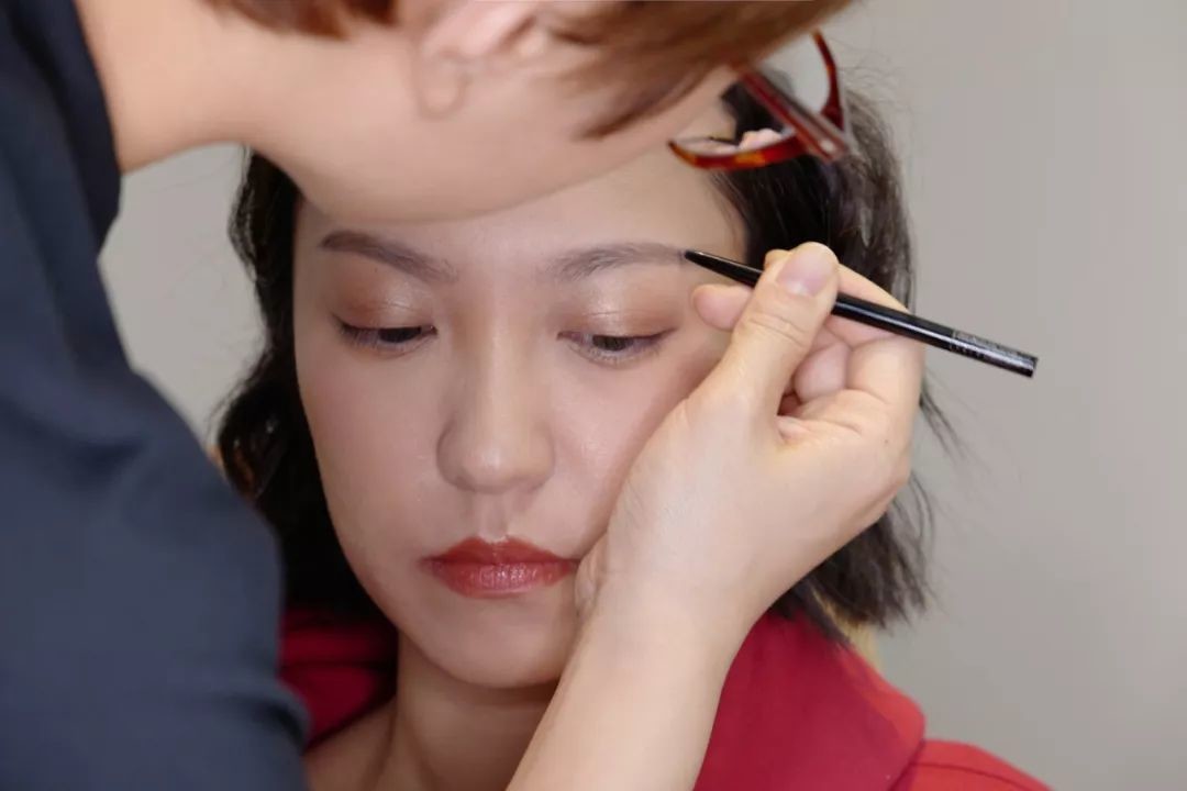 弱化眉峰,走势向上,眉毛画得比我以往的都要细长一些,看起来更温婉成熟,又有女性的坚定感。