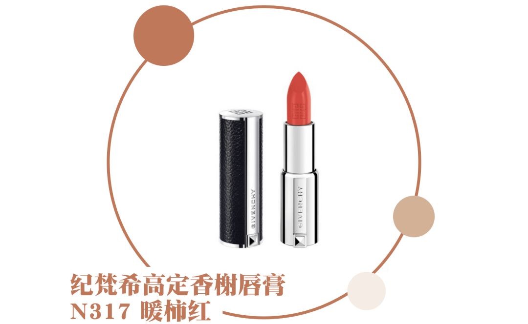 口红相比上一个橘调要明显一些,用到的是纪梵希高定香榭唇膏 N317暖柿红。