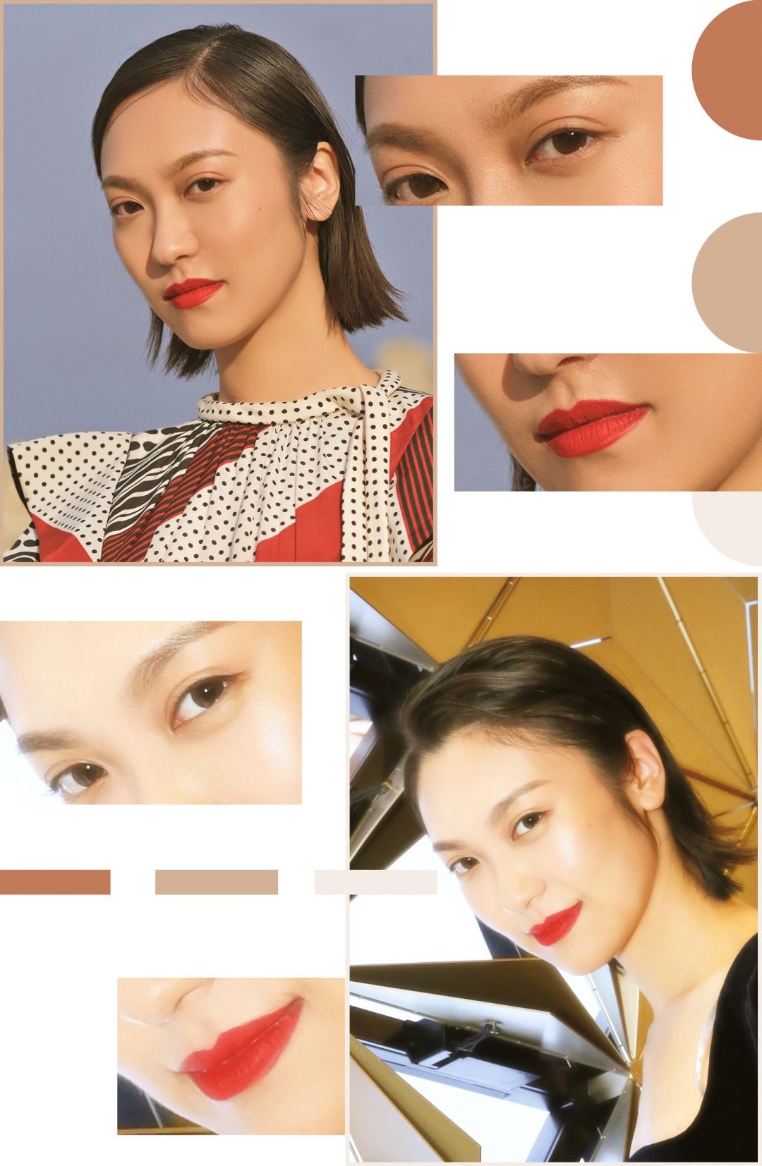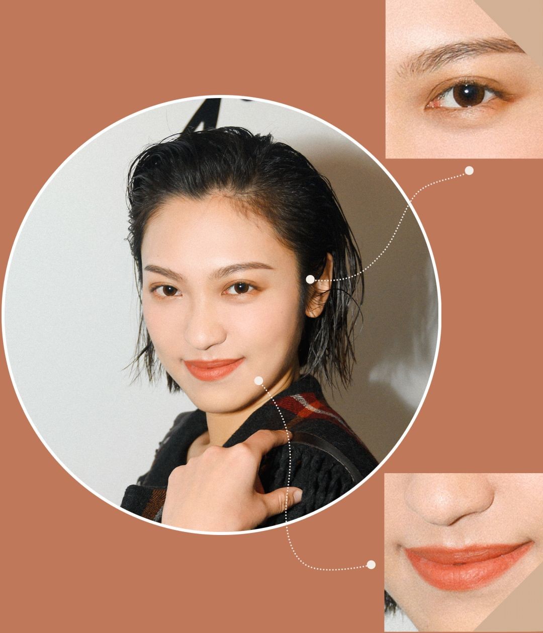 由于红唇在整个妆面里已经显得很突出了,我会淡化眉毛和眼妆的存在感,不然看起来会有点too much。