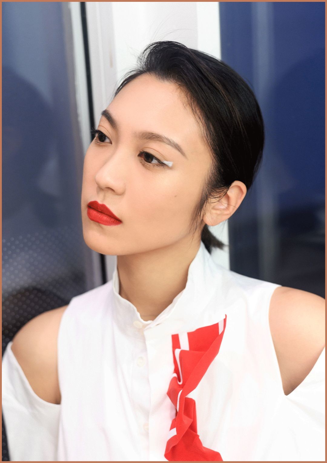 参加Fendi活动这一组红唇妆比较特别的是我细长上挑的眼线,整个人柔媚一些,和造型的风格呼应。