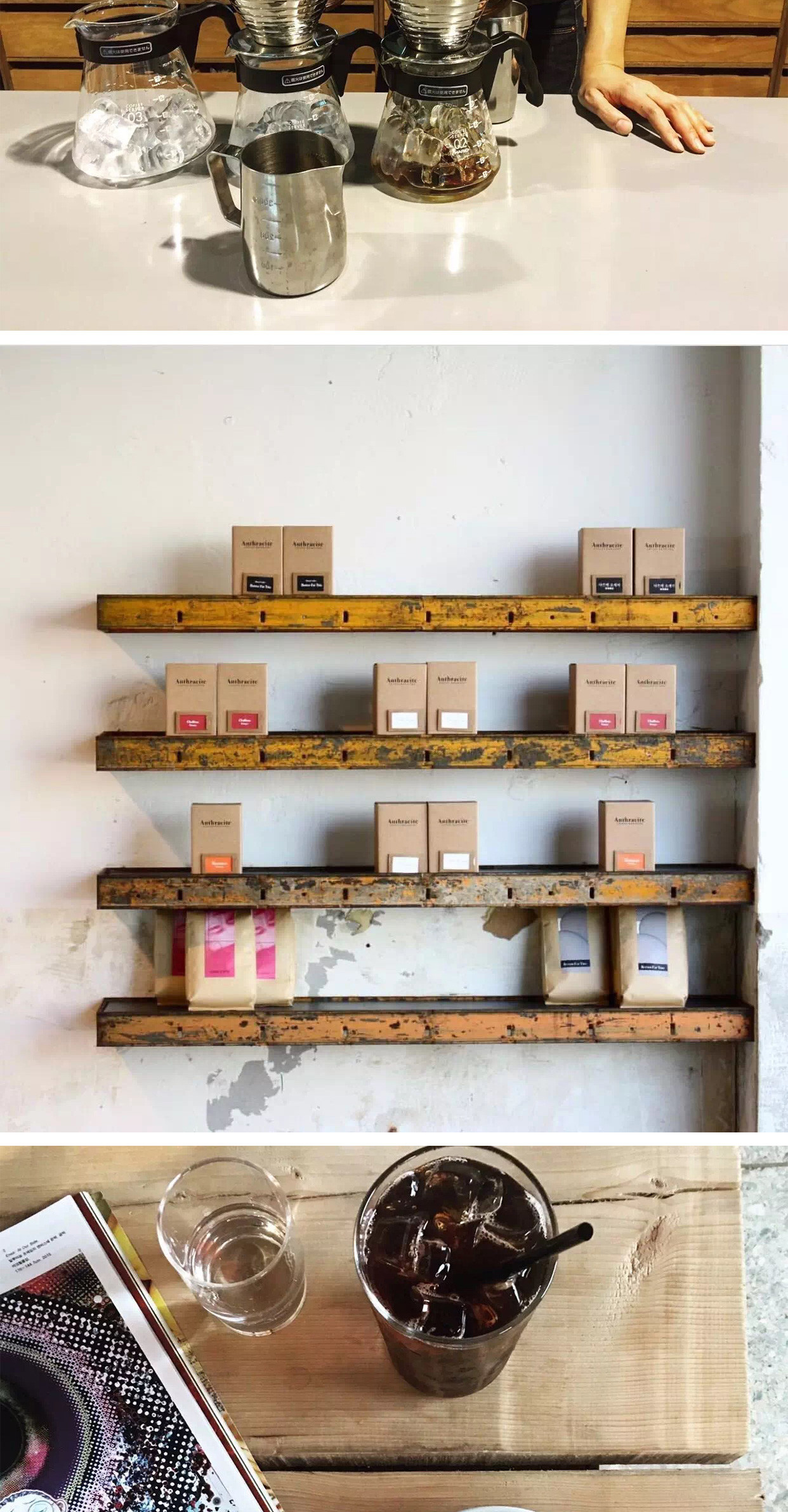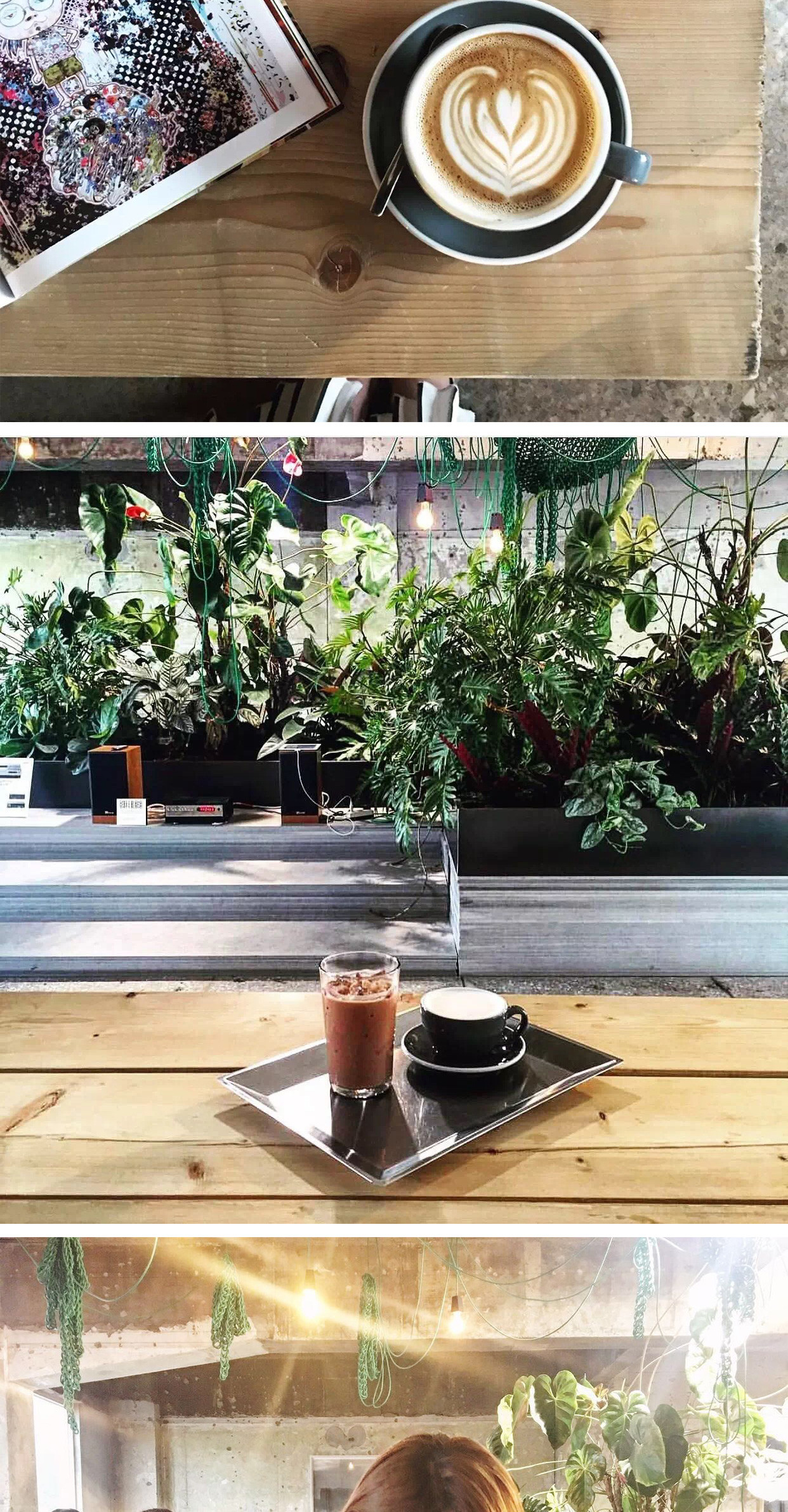 从D&D上楼,才是这幢三层建筑的主体:售卖着首尔最棒独立咖啡的Anthracite Coffee!一层是连接户外开放式露台的咖啡吧,二层被布置成一片热带植物园景象,临窗可以眺望整片汉南洞和梨泰院,三层则是韩式未完成极简风格。自家选购的各种咖啡豆做成的drop cafe自然是咖啡爱好者们不可错过的招牌,不喜欢喝咖啡的女伴点了姜汁牛奶和巧克力,也是赞不绝口。特别注意的是,这家咖啡也是附近的设计从业者非常爱的聚点,因此在这里遇见服装设计师和建筑师的概率非常高哦!
